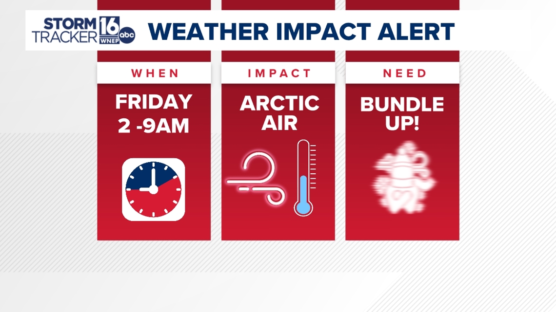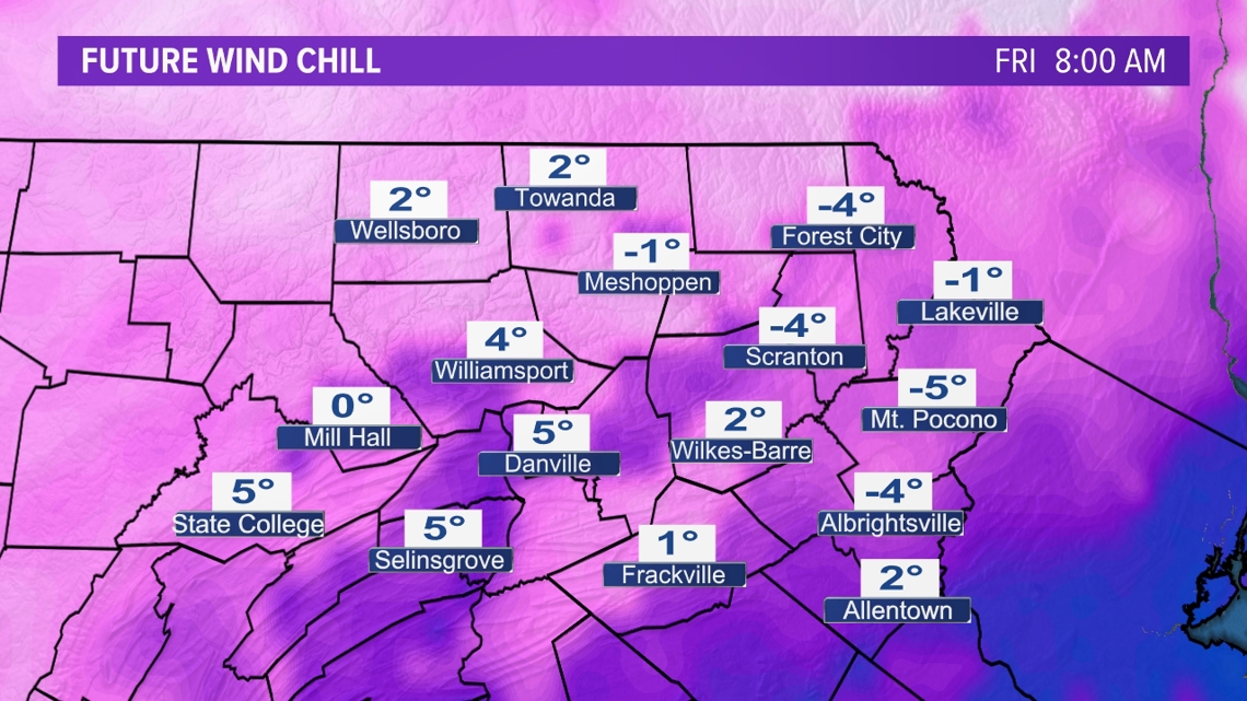 PENNSYLVANIA, USA — Friday morning will lead to wind chill values below zero in spots.